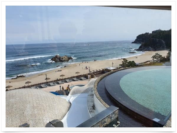 이틀 동안 들렀던 마지막 바다도 리조트 안에 있는 바다였다. 쏠비치 안에 있는 해변. 바다도 좋았고 커피도 좋았고 높은 곳에서 보는 해변은 또 다른 느낌이었다. 빵과 커피를 나누고, 강원도 일정의 마지막 목적지를 향해 출발했다.