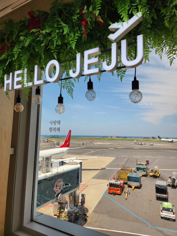 제주공항에서 오후 비행기를 타고 김포로 출발했다. 공항에 있는 작은 포토존을 사람 사진 없이 그냥 담았다. '사랑해, 행복해, 그리고 기억해' ... 그래, 이 날의 제주를 기억하고 또 다음을 기약하자. 나의 여행의 계기가 되어준 친구에게 감사했다.