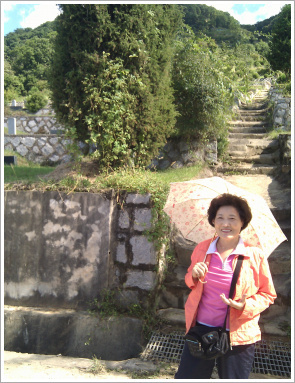 간단히 예배를 드리고 내려오는 가파른 길. 어머니는 한결 가벼워진 발걸음으로 내려오신다. 오랜만에 외할아버지를 만났다는 기쁨 덕분이리라. <2010.10.16>