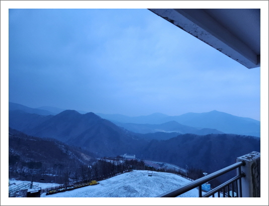 12시쯤 잠들었을까? 같은 숙소내에 대학교 O.T를 와서 밤새 쿵짝 쿵짝, 광란의 도가니였다. 다들 코골면서 잠들었는데, 내가 민감한 건지 새벽에 두번은 깬거 같다. 그래도 새벽에 일어나 찬바람 맞으며 산들의 능선을 보니 정말 멋있었다. 이런 게 여행이고, 휴식이라는 생각이 들었다.